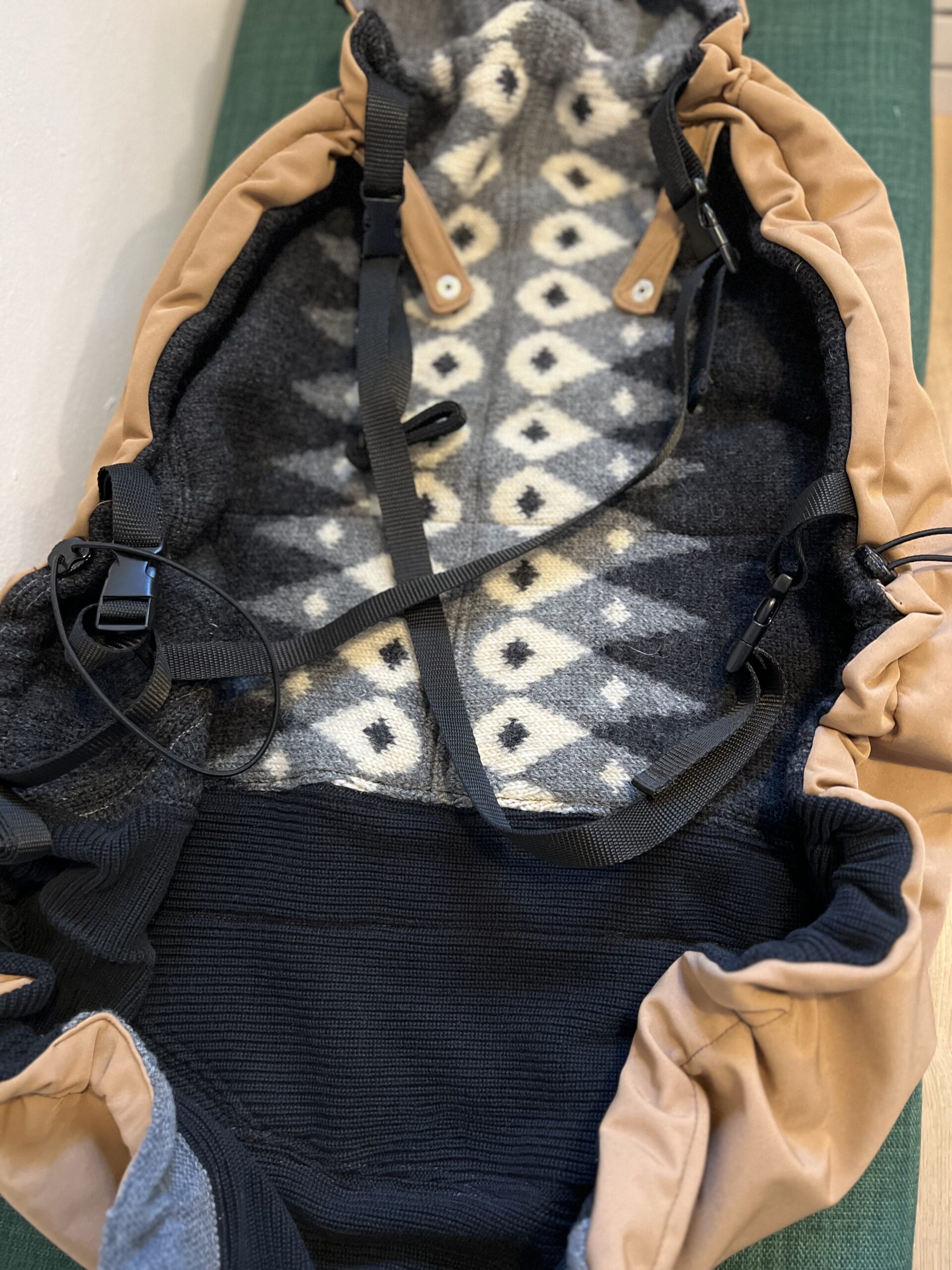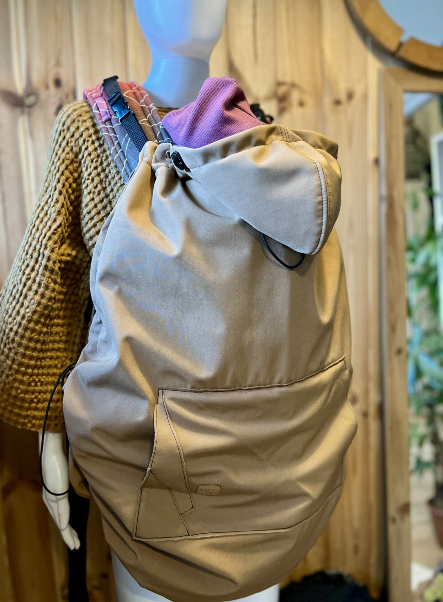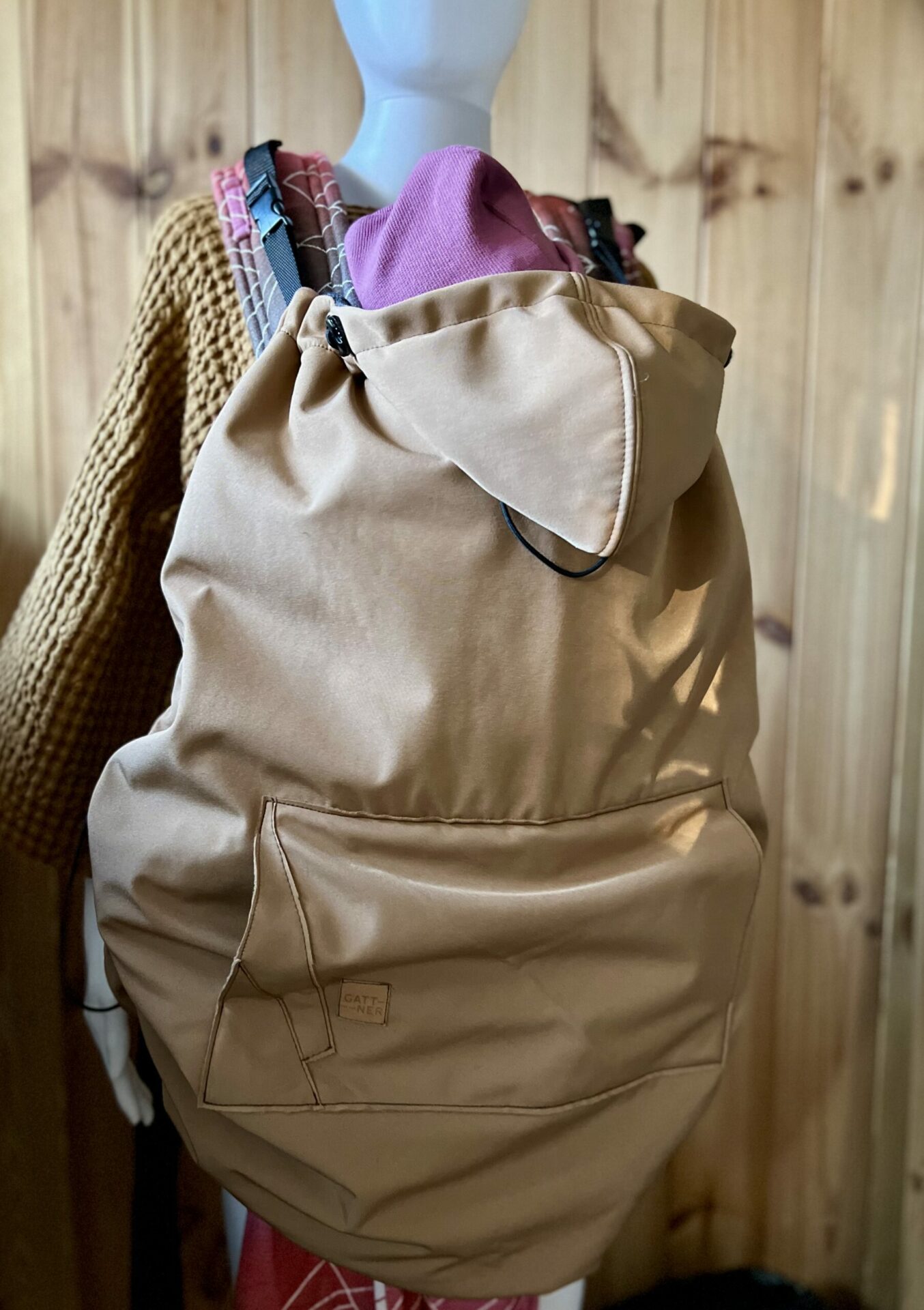 Ochronna osłonka softshellowa do chust i nosideł ergonomicznych chroniąca przed wiatrem, deszczem i zimnem.