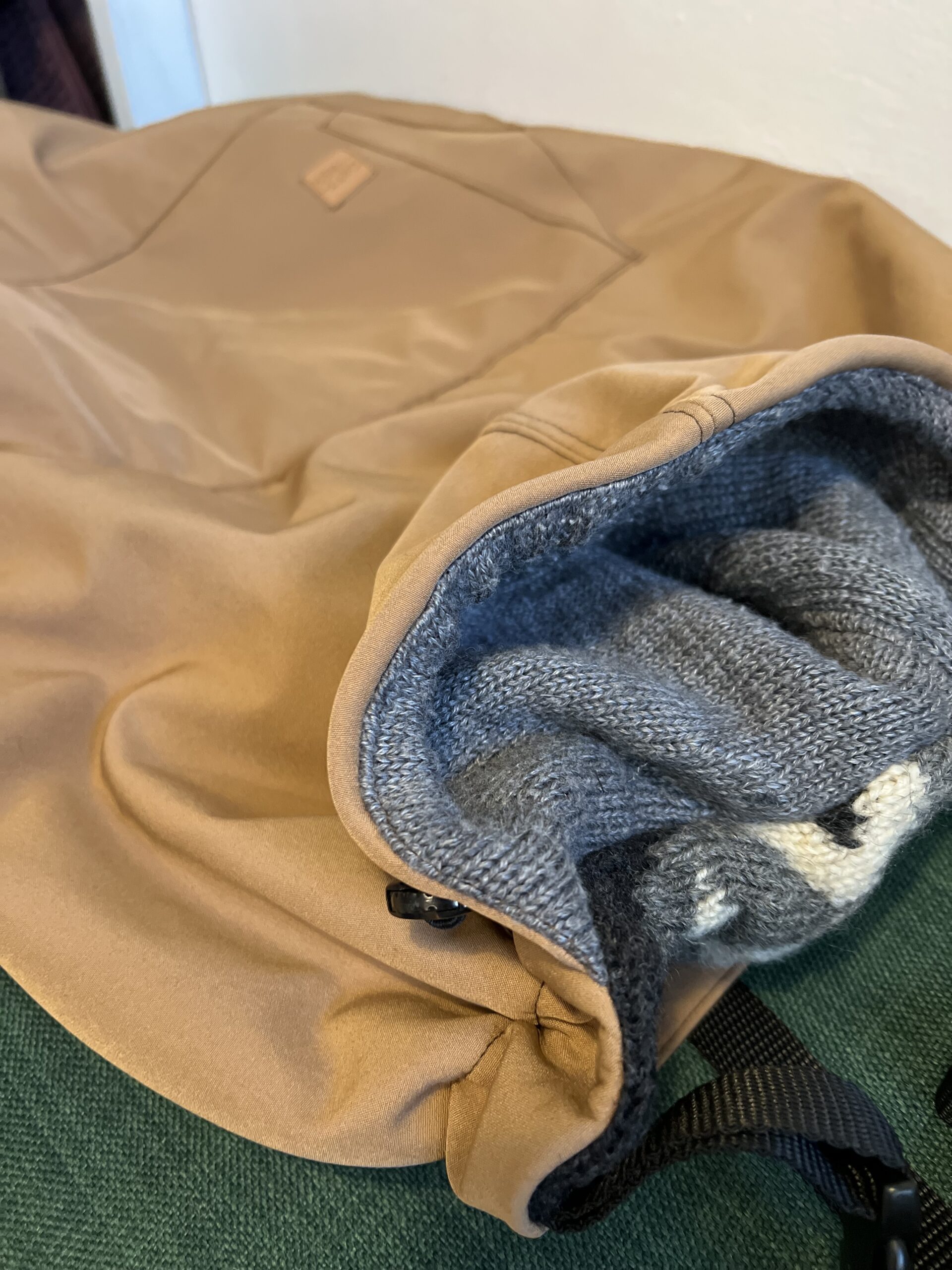Podszyta od wewnątrz wysokojakościowym „sweterkiem” wełnianym. Sweterek pochodzi z drugiego obiegu, ta wysokiej jakości wełna została wykorzystana jako ocieplenie softshellu, żeby było ciepło i przyjemnie Twojemu maluszkowi.